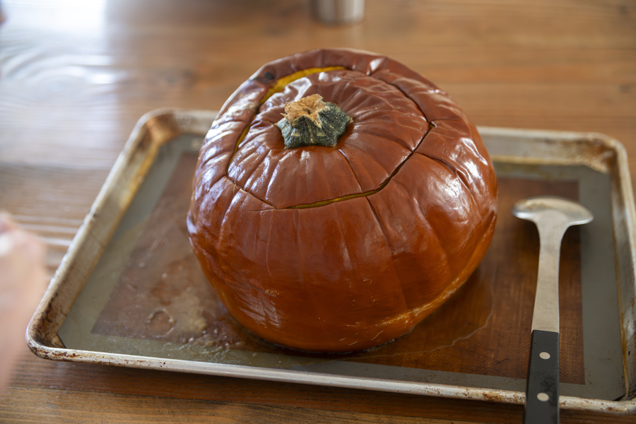 Becca made a pumpkin soup, served inside a pumpkin. It was good.