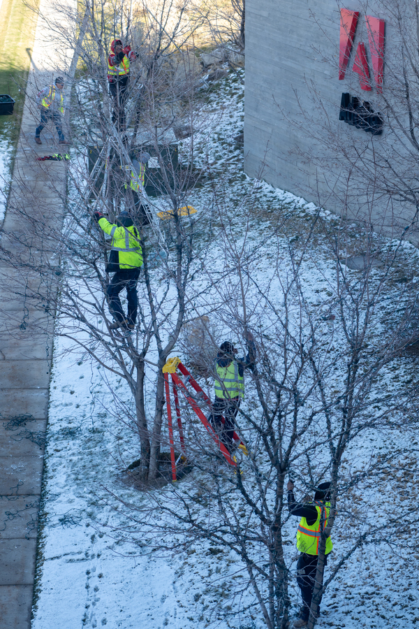 They're taking down the Christmas lights at Adobe.