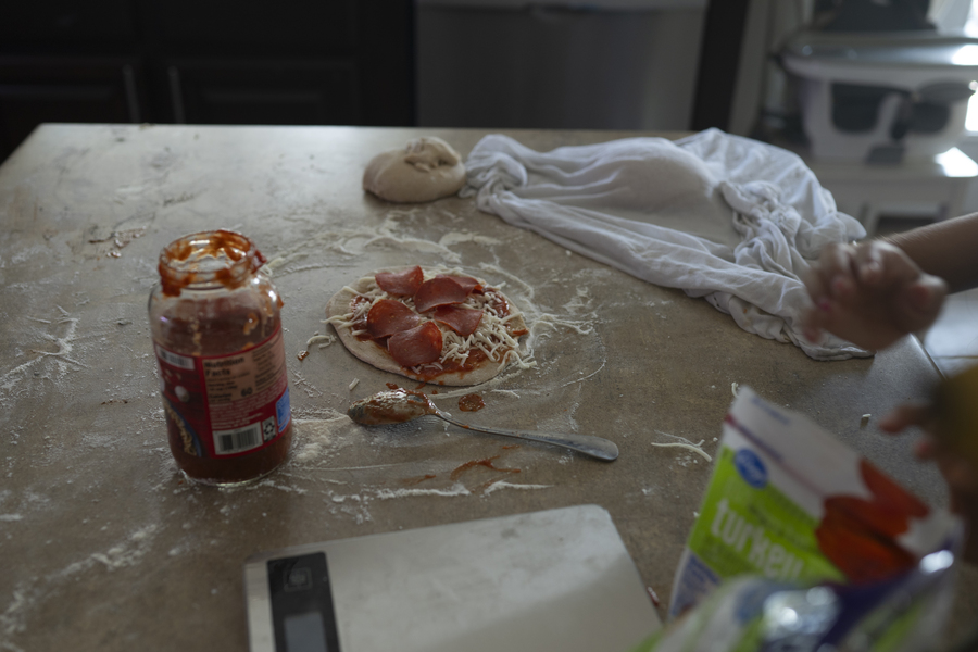 The kids all made their own pizzas, and Becca cooked them in the pizza oven.