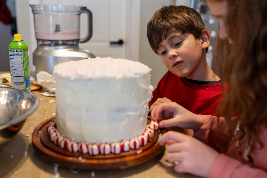 Matt and Maggie helping to decorate the cake for our Christmas Eve party.